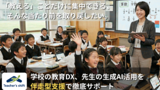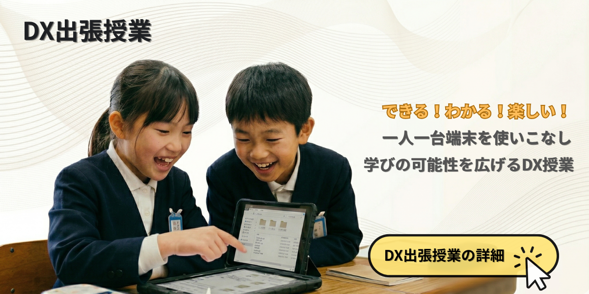 現役教師である講師が教室に伺い、先生の代わりに子どもたちへ直接授業(ゲストティーチャー)を行います。この授業を受けるだけで、クラスの子どもたちがGoogle Workspace、Canva、Padletなどの教育系ツールや、生成AIを使いこなせるようになります。
